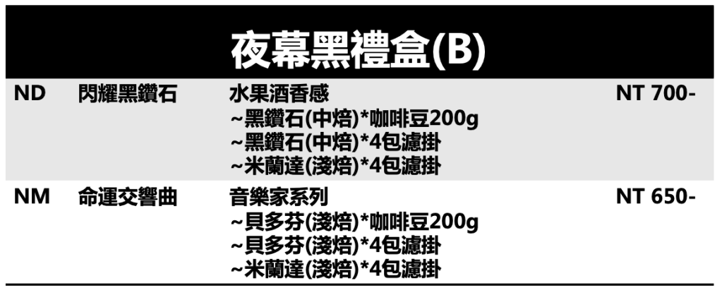 Gift 禮盒款 禮盒組 所有商品都可以在蝦皮賣場找到 All products are sold on “Shopee" website! Welcome to visit! 蝦皮購物 夜幕黑-咖啡禮盒(蝦皮賣場) 日光紅-咖啡經典禮盒(蝦皮賣場) 分享此文: 按一下即可分享至 X(在新視窗中開啟) X 按一下以分享至 Facebook(在新視窗中開啟) Facebook 喜歡 正在載入...